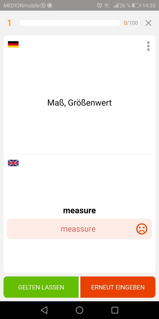 Bevor man neue Vokabeln üben kann, müssen diese zunächst aktiviert werden. Beim Aktivieren kann ausgewählt werden in welcher Abfragerichtung die Vokabel gelernt werden soll, werden beide Abfragerichtung ausgewählt, so muss die Vokabel sowohl für die Abfragerichtung Deutsch -> Fremdsprache als auch für die Abfragerichtung Fremdsprache -> Deutsch alle 6 Phasen durchlaufen. Jede Karte wird zunächst mit Übersetzung angezeigt, damit der Nutzer sich die Karte einprägen kann. Sind die Karten initialisiert werden sie in die Lernkartei aufgenommen und werden im Modus regulär Üben abgefragt. Alternativ kann das initialisieren auch übersprungen werden und die Karten werden direkt in Phase 1 abgefragt.